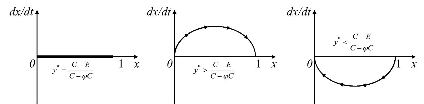Replicator dynamics phase diagram of the user population