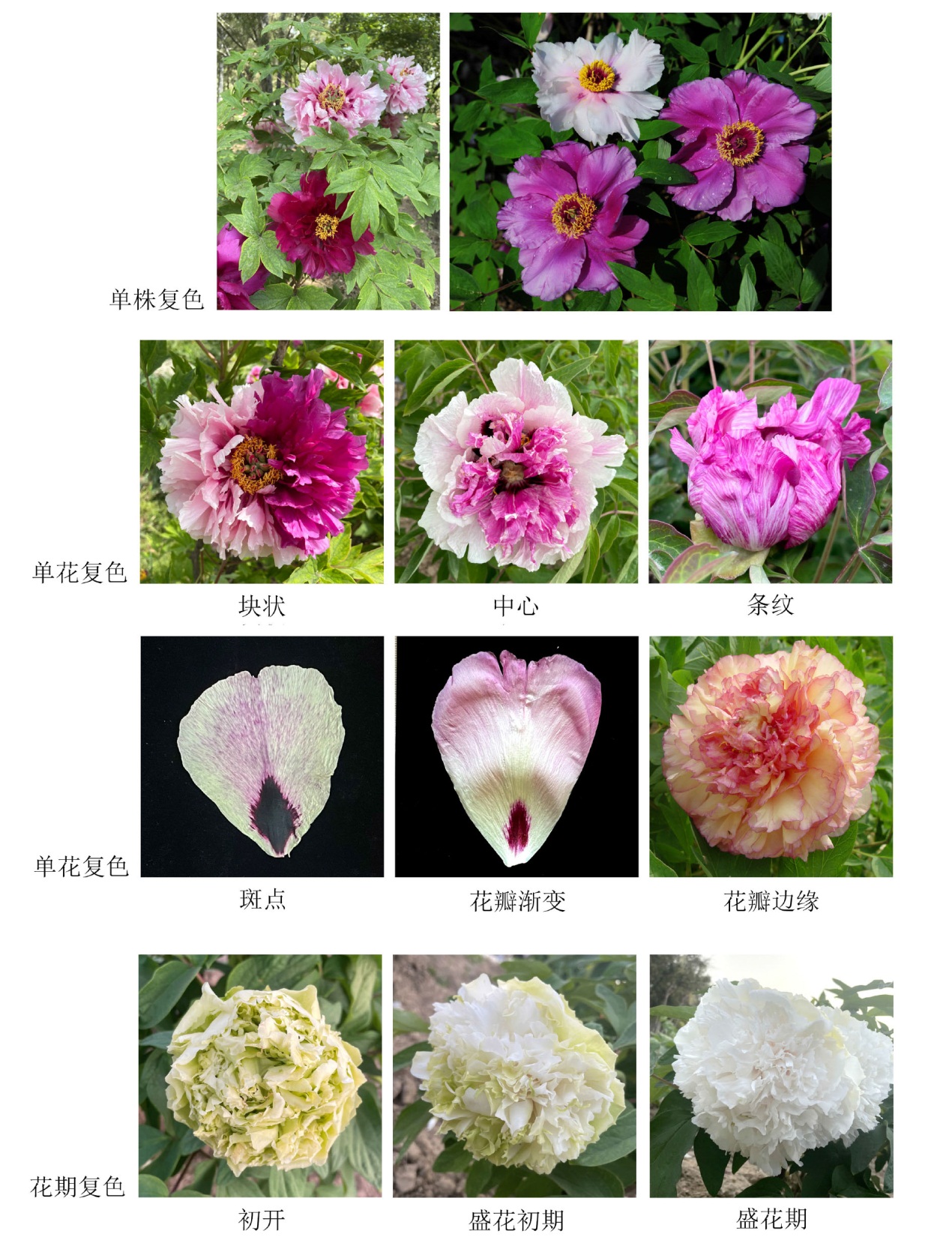 1 | 花二乔 | 牡丹/中原品种群 | 山东菏泽、北京 | 单株复色;块状 |